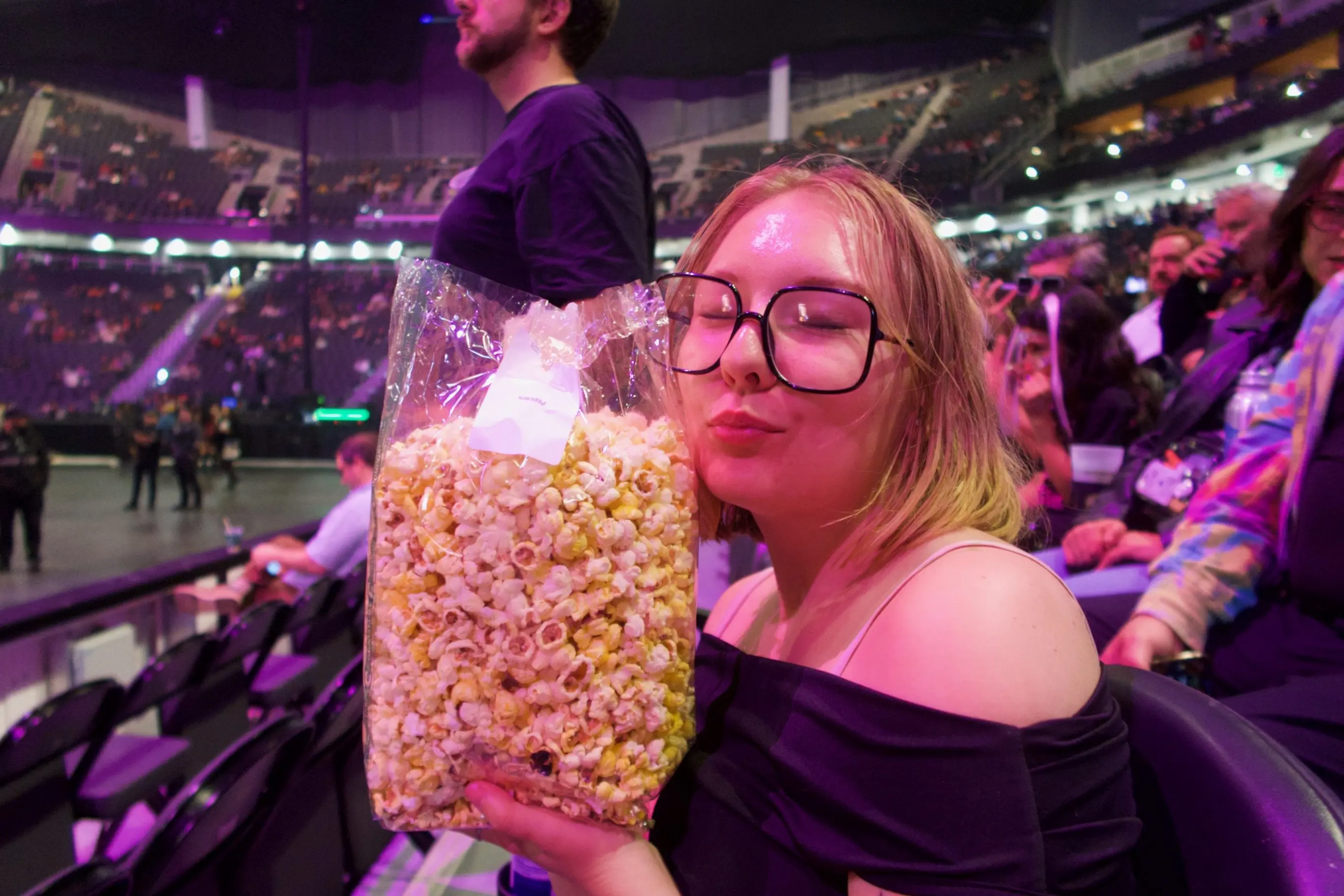 I left the arena feeling lighter, happier, and so grateful for her and the incredible crew who created that night. And as I left, I have to give a moment of mention to the snack that made attending this concert 10 times better: Climate Pledge Arena’s popcorn. I don’t know who they hired to bless this corn, but it’s the best popcorn ever—crunchy, buttery, salty, tasty, and perfectly gorgeous. I was only going to graze, but the second song was already half eaten by me. I actually had to force myself to put the popcorn down so I could listen to Dua’s performance. There is something so funny about singing and dancing along with one hand raised and the other shoving popcorn into one’s mouth. The popcorn just added ten times more awesomeness to Dua’s performance.